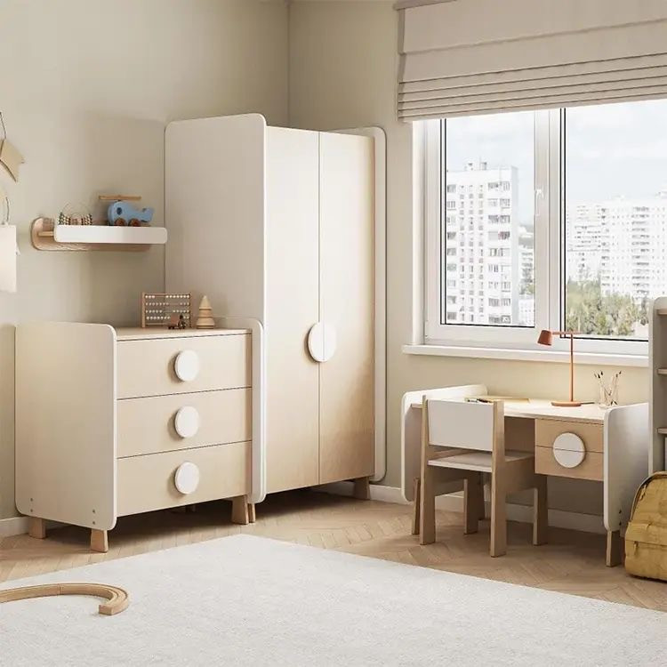 ست سه تیکه میز تحریر،دراور،کمد لباس کودک مدل Valen با طراحی مینیمال و شیک فضایی مدرن به اتاق خواب فرزندتان میبخشد.