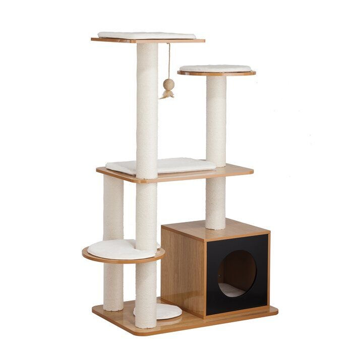 The modern cat tree features a multi-level structure crafted from durable MDF،offering a safe space fpr play and rest